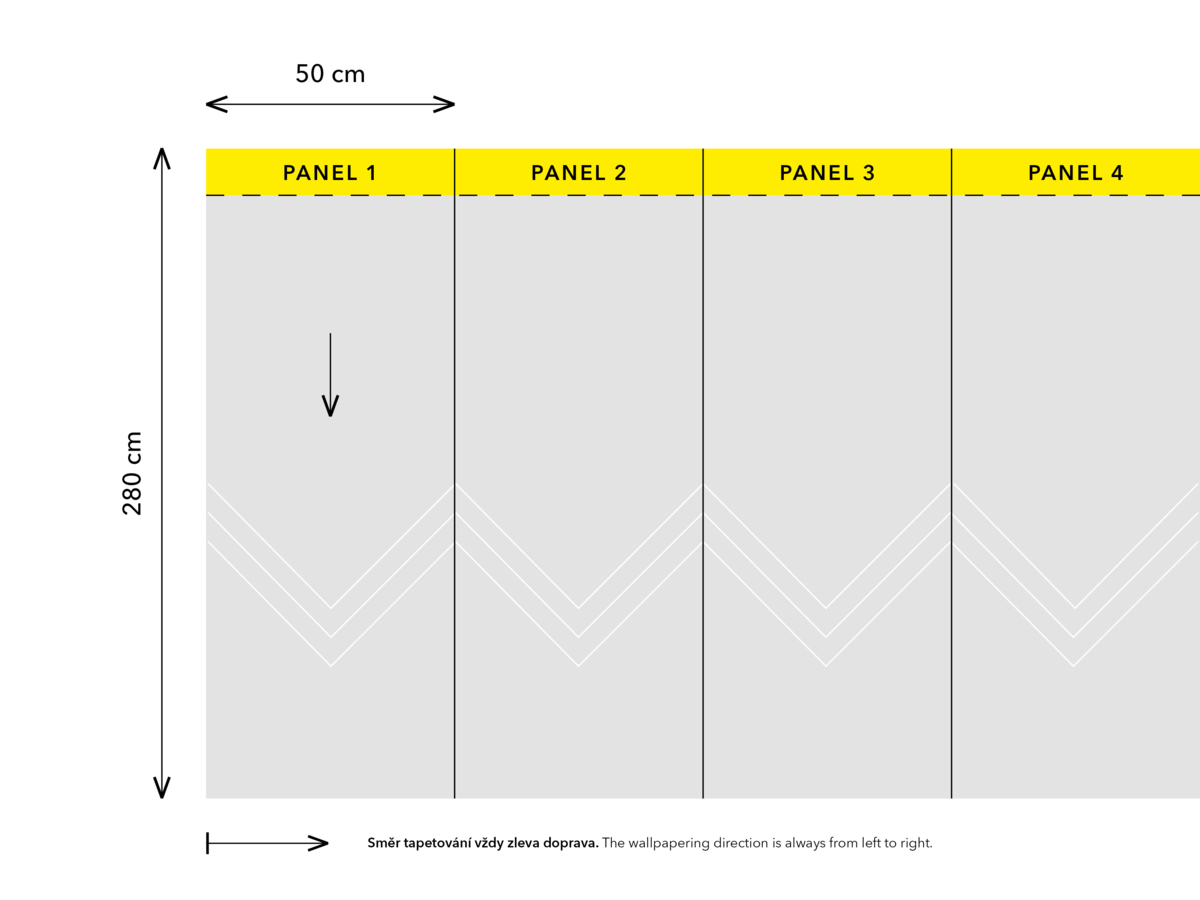 Role nie je po celej svojej dĺžke neprerušovaným vzorom, ale je delená na 2 panely (4 panely), ktoré pri tapetovanie na seba nadväzujú.